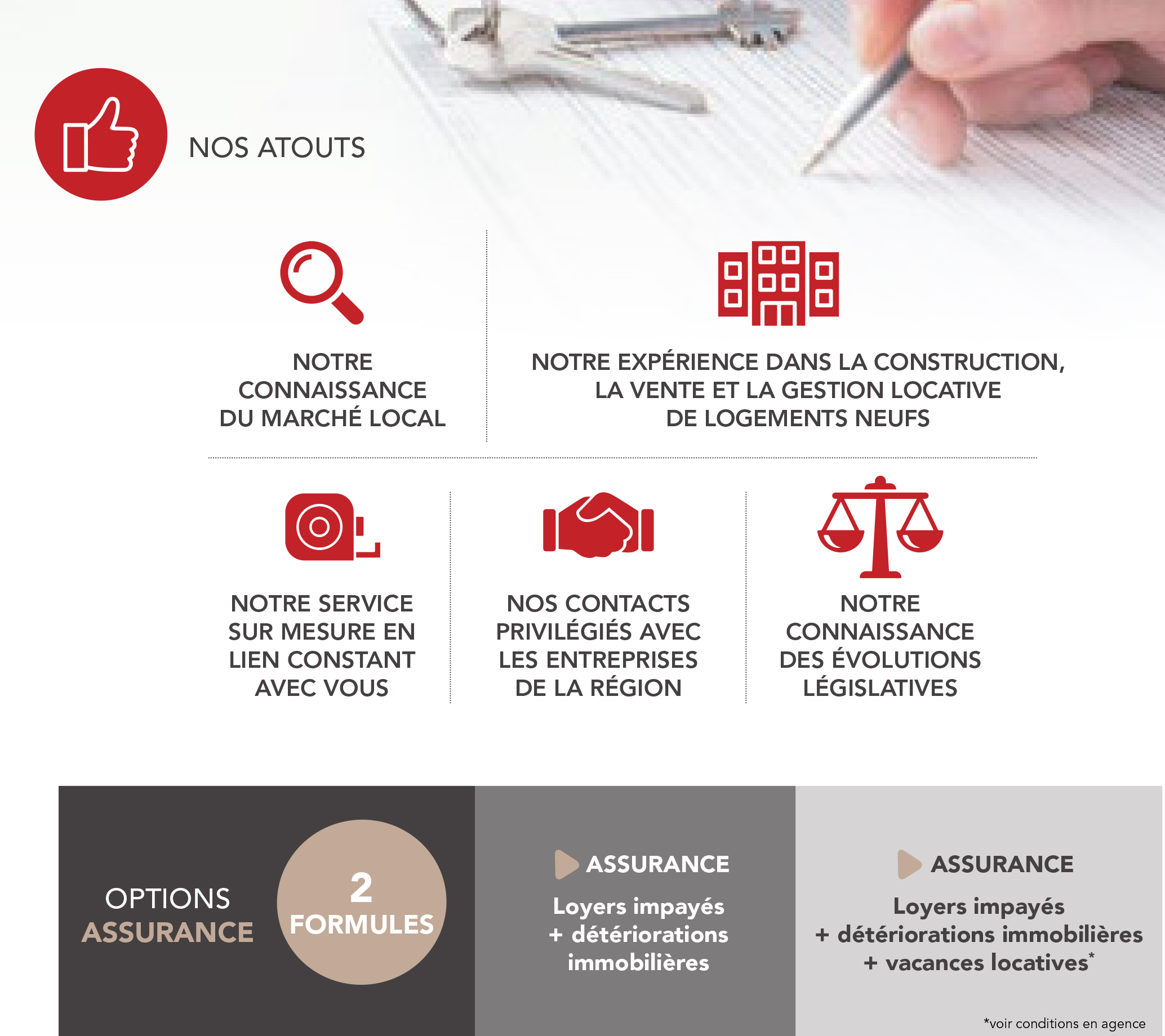 Nous proposons par ailleurs deux formules d’assurance permettant de vous protéger contre les impayés de loyers, les retards de paiement, les dégradations du logement et la vacance locative :