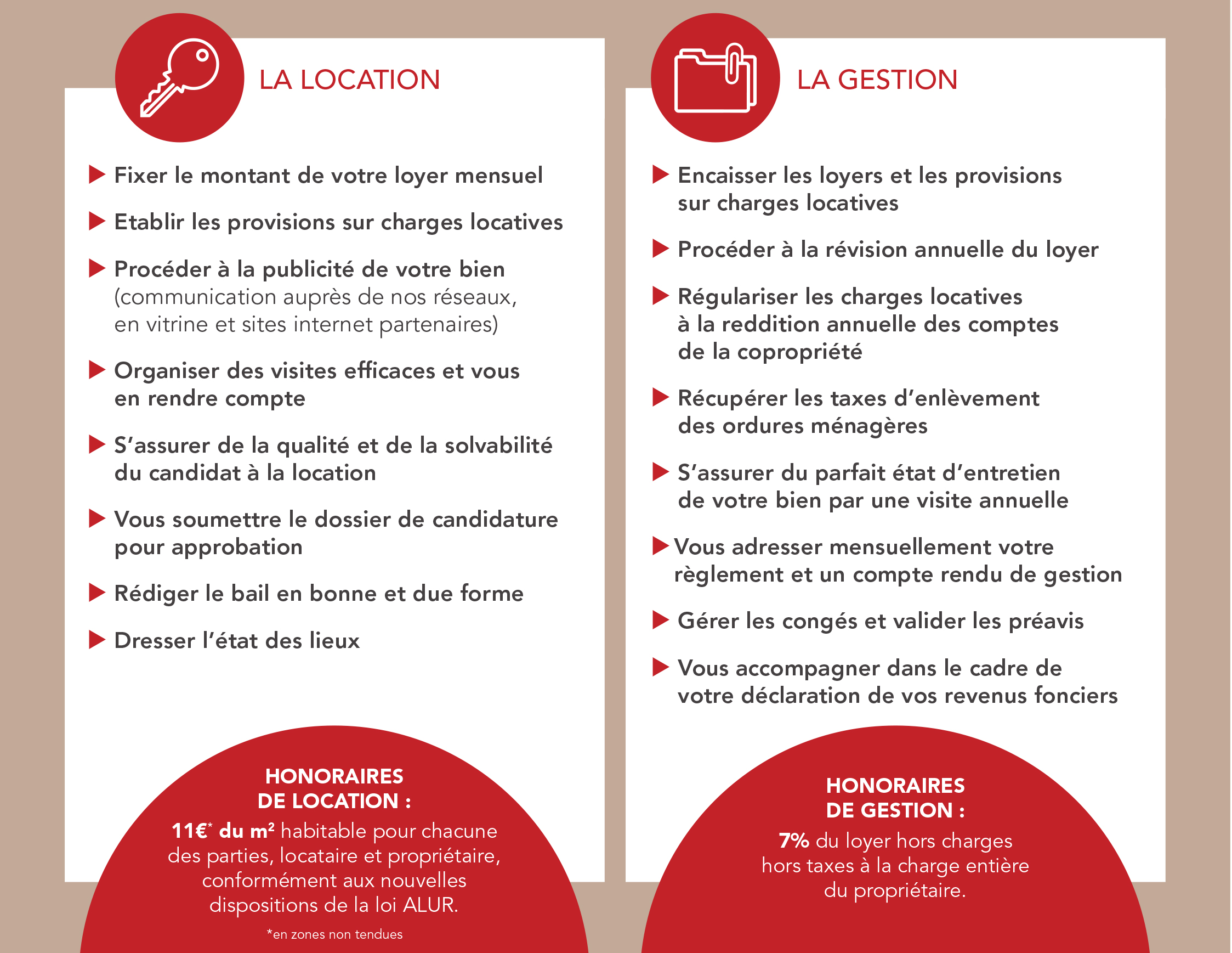 Nous veillons également au parfait état d’entretien de votre bien par une visite annuelle, nous vous envoyons chaque mois votre règlement et un compte rendu de gestion. Puis, nous assurons la gestion des congés et validons les préavis de départ du logement. Nous pouvons également vous accompagner dans la réalisation de votre déclaration de revenus fonciers (formulaire 2044).
