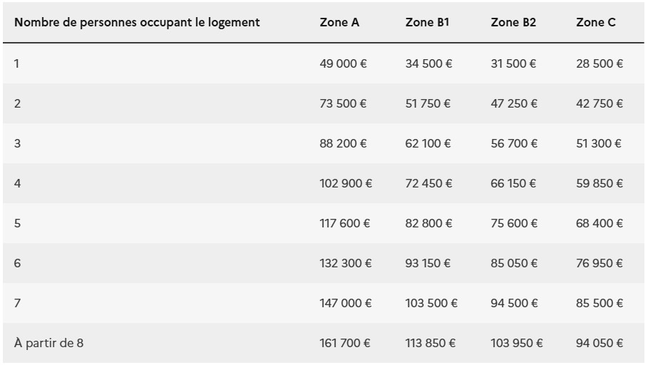 Pour un prêt à taux zéro demandé en 2025, les plafonds de ressources, prenant en compte le revenu fiscal de référence N-2, sont les suivants :
