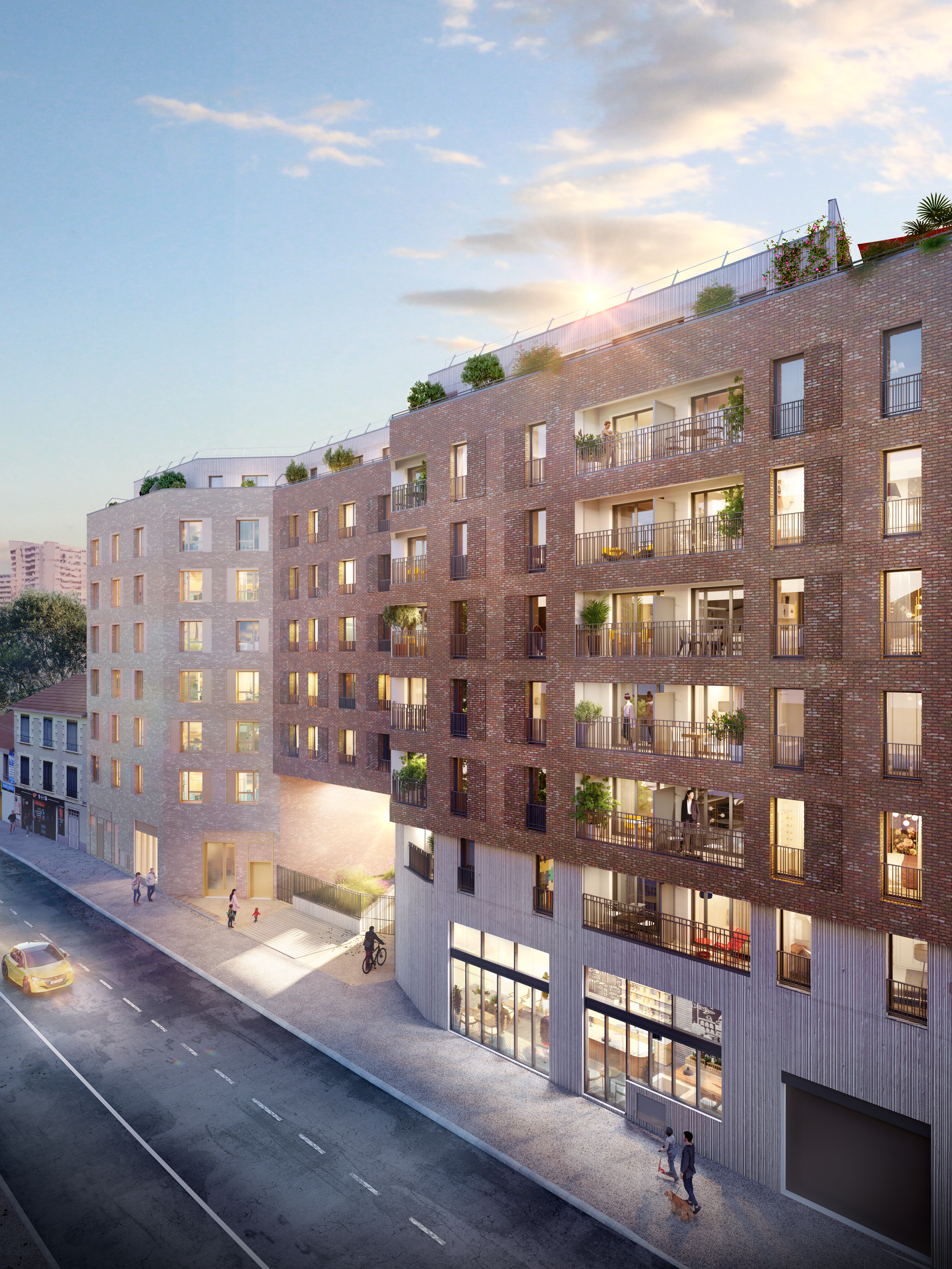 Avenue Gallieni, « New Age » dévoile une écriture élégante qui attire le regard. Inspirée des codes architecturaux industriels de la ville, elle sublime les matériaux, les teintes et les volumes pour en livrer une interprétation contemporaine. Les façades se parent de briques brunes et beiges qui soulignent et accompagnent le jeu des pleins et des creux créant une véritable dynamique visuelle.