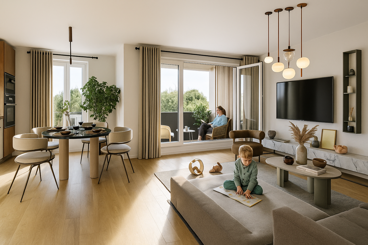 Accueillants et naturellement lumineux, les appartements dévoilent des surfaces optimisées allant jusqu'à 88 m2 et s'ouvrent sur une terrasse avec jardin privatif, une loggia ou une terrasse tropézienne au dernier étage, invitant à une pause ensoleillée à l'extérieur.