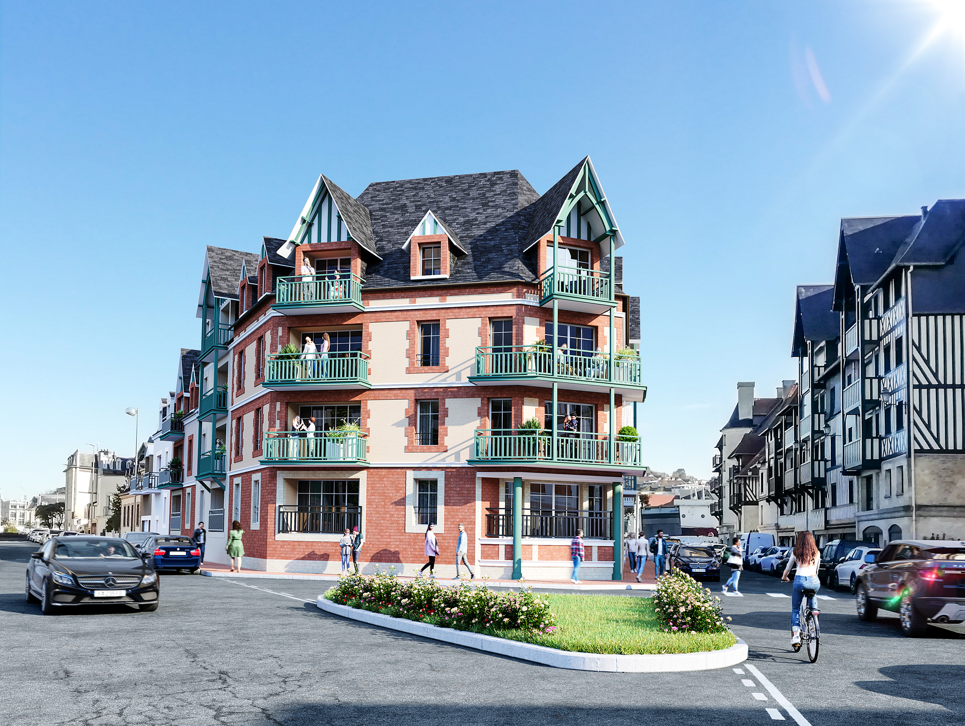 Dans la pure tradition deauvillaise, votre résidence s’inscrit dans une architecture d’inspiration néo-normande, mêlant pierres et briques mordorées.
