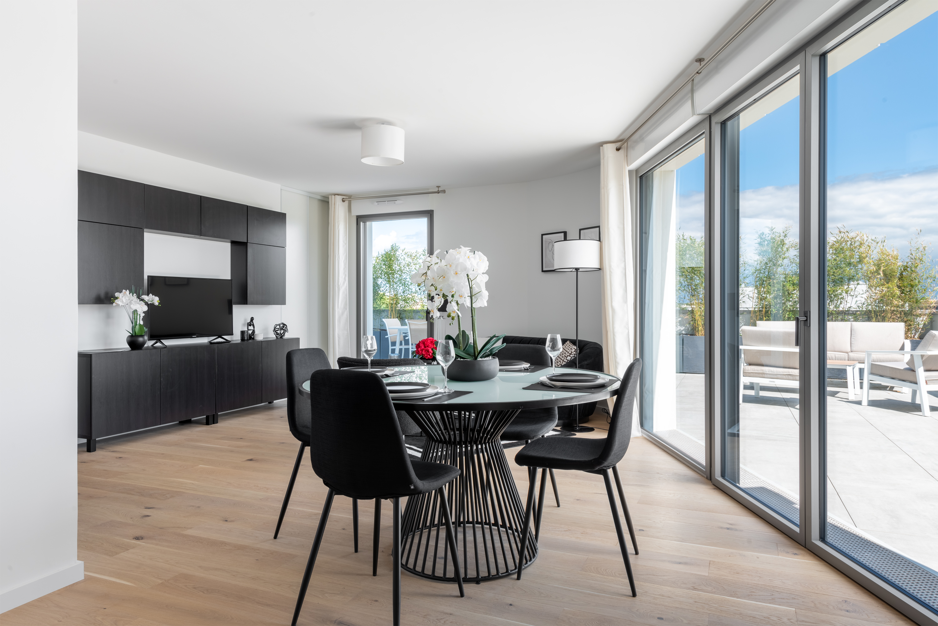 Cette résidence à l'architecture élégante proposant des appartements lumineux avec de beaux volumes est résolument tournée vers les espaces extérieurs.
